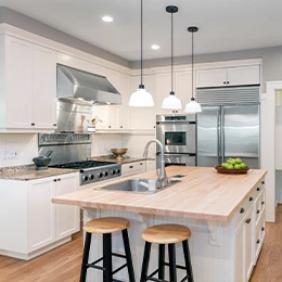 La rénovation des cuisines et salles de bain vise à allier ergonomie et design contemporain. L’installation de plans de travail en quartz, de douches à l'italienne et de rangements astucieux permet d’optimiser le confort et la fonctionnalité de ces espaces clés.