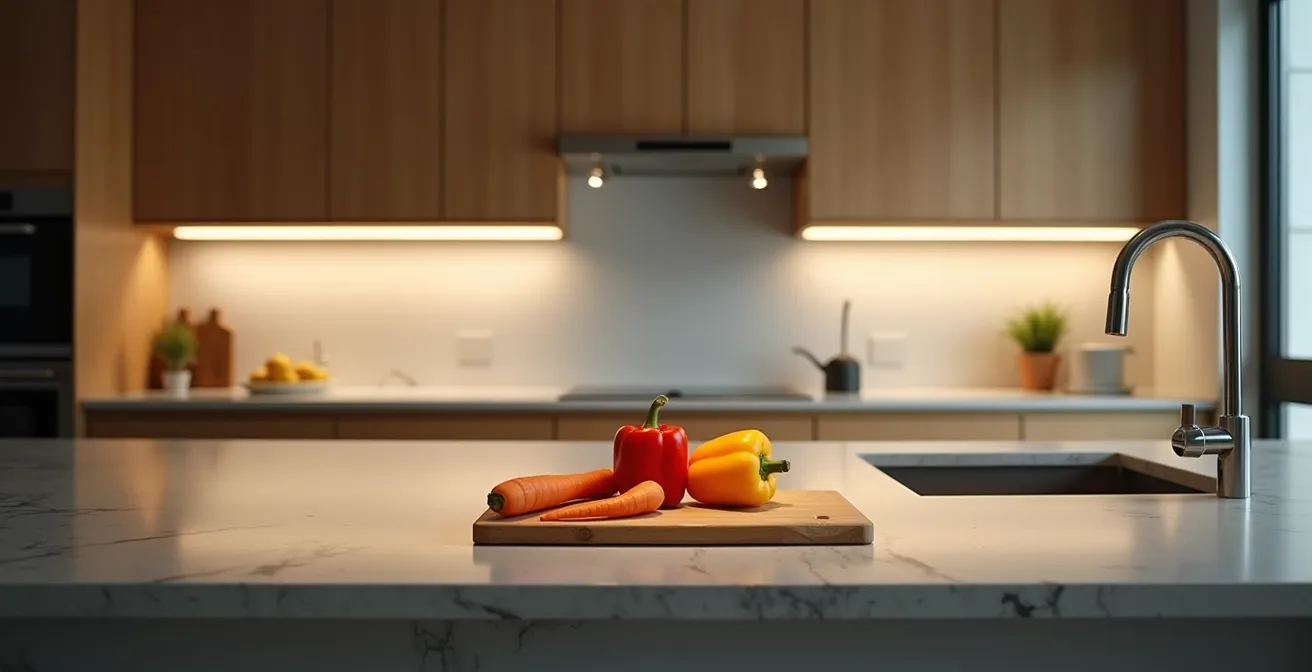 - 4000K (Blanc Neutre) : Cette lumière est plus blanche et plus proche de la lumière du jour. C’est le choix de la précision. Elle est parfaite pour les cuisines modernes et minimalistes avec des comptoirs en quartz blanc, des armoires laquées ou des surfaces en acier inoxydable. Elle maximise la netteté et donne une impression de propreté « chirurgicale », ce qui est très apprécié pour les tâches de préparation minutieuses.