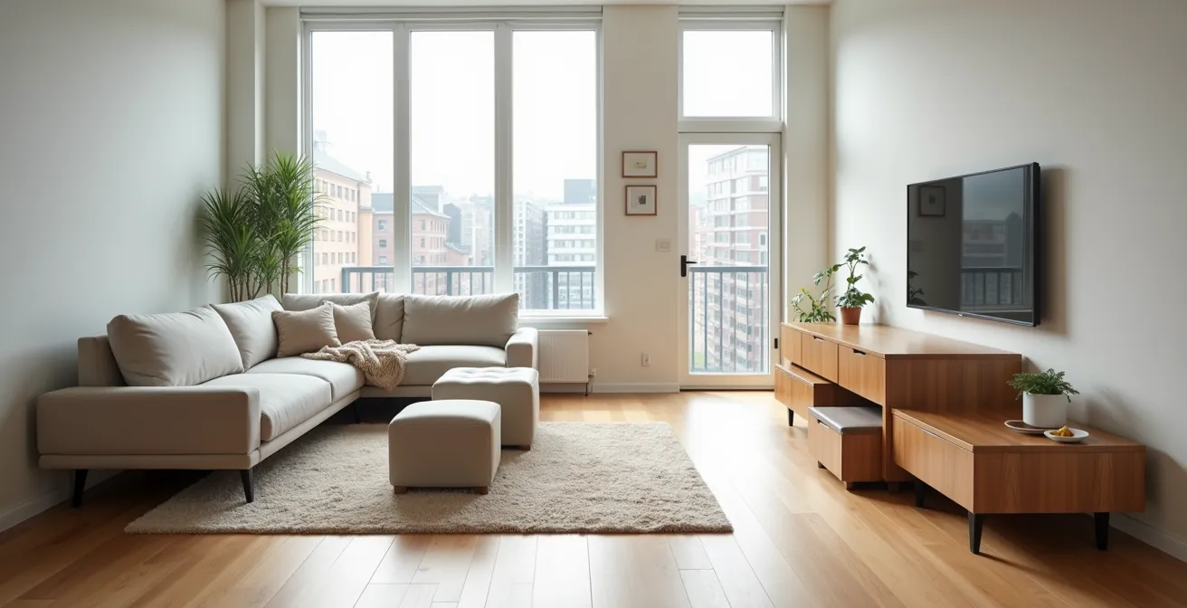 On pense souvent que pour gagner de l’espace, il faut des meubles plus petits. C’est une erreur. Le plus souvent, le problème n’est pas la taille des meubles, mais leur positionnement statique. Un agencement mal pensé peut gaspiller des dizaines de pieds carrés en zones de circulation inutiles ou en « coins morts ». Libérer de l’espace est souvent une question de réorganisation, pas de remplacement. Prenons un salon de condo typique sur la Rive-Sud de Montréal, où le prix médian d’une copropriété est un facteur décisif.