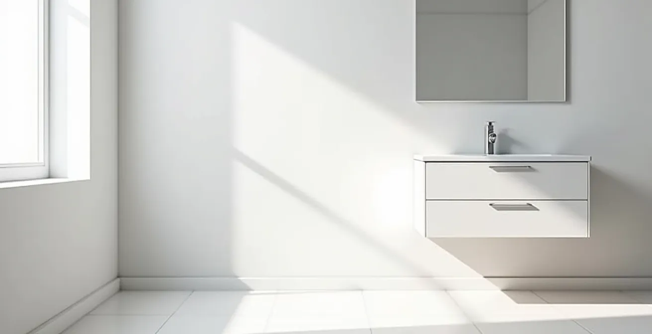 La solution n’est donc pas de nettoyer plus, mais de concevoir différemment. Le mobilier suspendu crée une « zone critique zéro contact ». En élevant le meuble, on brise ce pont d’humidité. L’air circule librement sous la vanité, permettant un séchage rapide et complet du sol après chaque utilisation de la douche ou du bain. Vous n’éliminez pas seulement une cachette pour la saleté ; vous supprimez les conditions mêmes qui permettent à la moisissure de s’installer.