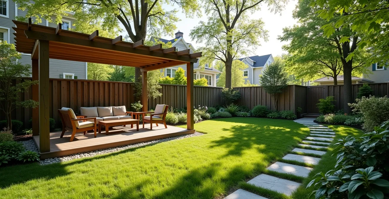 L’approche consiste à prioriser les travaux selon leur impact et leur fonction structurante. La première phase doit toujours se concentrer sur l’épine dorsale de votre projet : la structure et l’intimité. Cela inclut les clôtures, la plantation des arbres qui prendront du temps à maturer, et les travaux de terrassement majeurs. La deuxième phase se concentre sur les zones de vie : le patio, la pergola, l’éclairage de base. Enfin, la troisième phase est celle de la finition et de l’ambiance : les plantations de vivaces et d’arbustes, le système d’irrigation et la décoration.